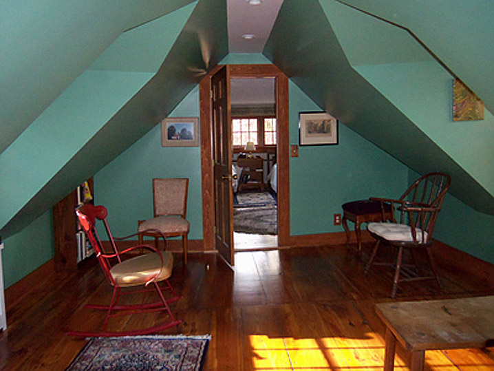 At some point, a wing was added on to the rear, perhaps another old building that was moved to the site and tacked on, judging from the irregular floors. All sections of the house have post and beam construction and low ceilings, suggesting an early construction date. Generations of owners have added their own touches to this cozy and unique home, including a full-width shed dormer in the front, smaller gable dormers in the rear section, and a side porch..