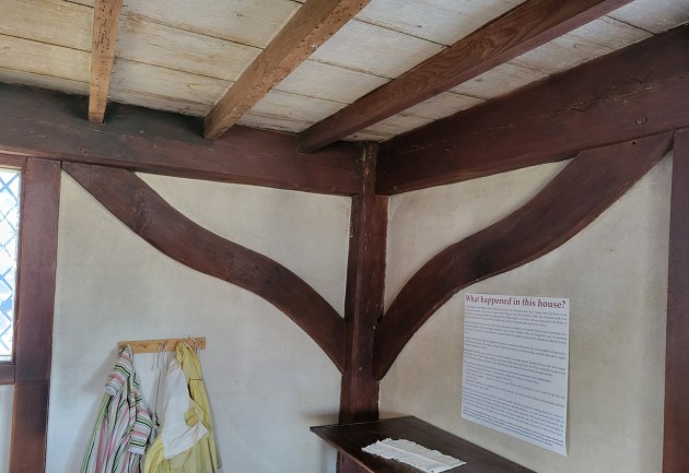 The framed overhangs on the Claflin-Richards house are examples of the “Post-Medieval Revival” period of the late 17th century.