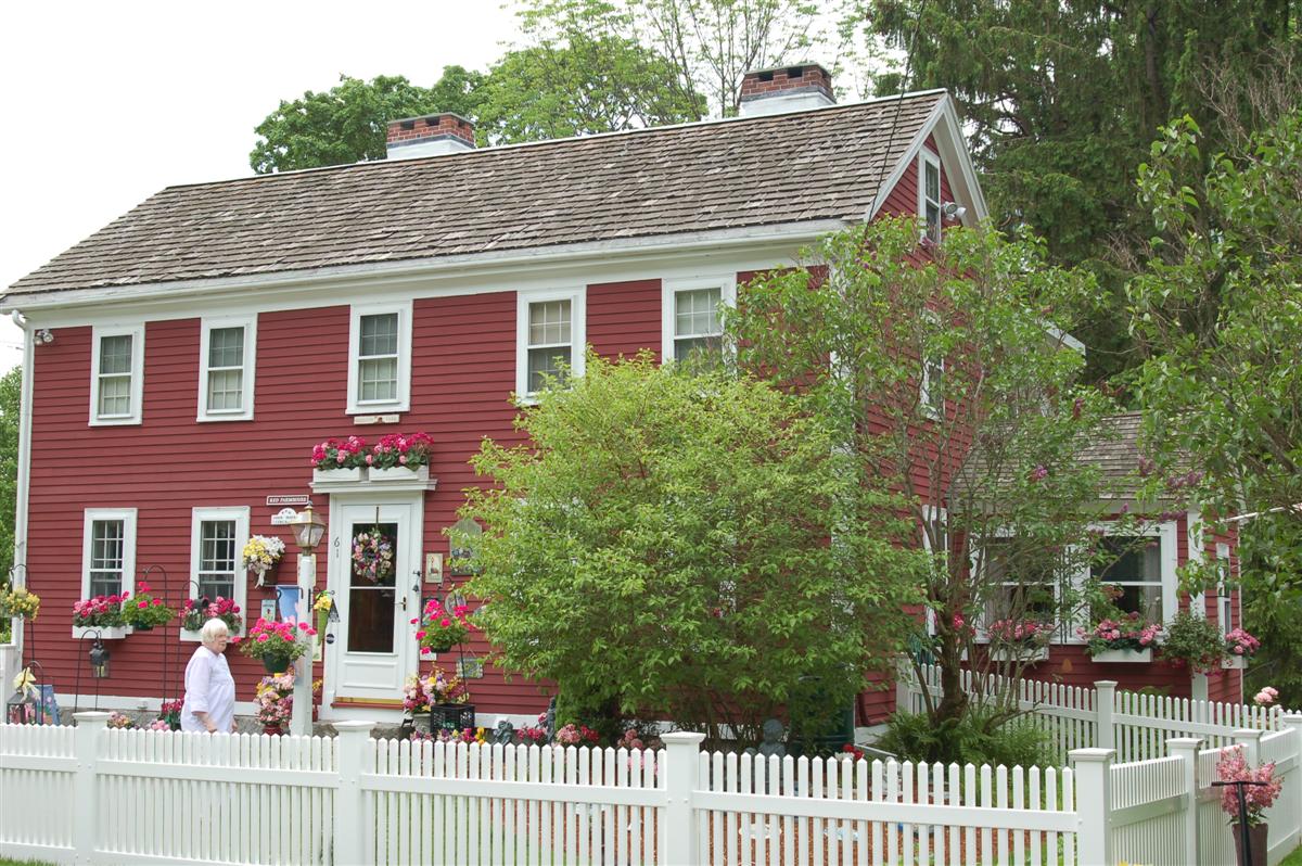 The oldest part of the traditional saltbox house at 89 Prospect Rd. is said to have been built by Timothy Holt in 1714 on land granted to Nicholas Holt in 1661. Until 1883, the property was continuously owned and farmed by seven generations of descendants of Nicholas Holt. The front of the building has a later addition.