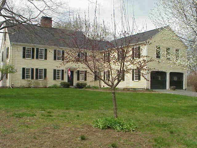 BOX.60, Jacob Gould House, 110 Middleton Rd, 1721: Captain Jacob Gould was born in Topsfield in 1729, and was a son of John Gould. He married Elizabeth Towne of his native place in 1751, came to Boxford and it is believed built this house three years later, but it may have incorporated the house of his father. Jacob Gould was chosen captain of the military company of this parish and marched with them under his command when the news of the battle of Lexington came. He died in 1809, at the age of eighty. He had twelve children John Gould took down the oldest part of the house about 1824, and built the eastern end. (from Perley)