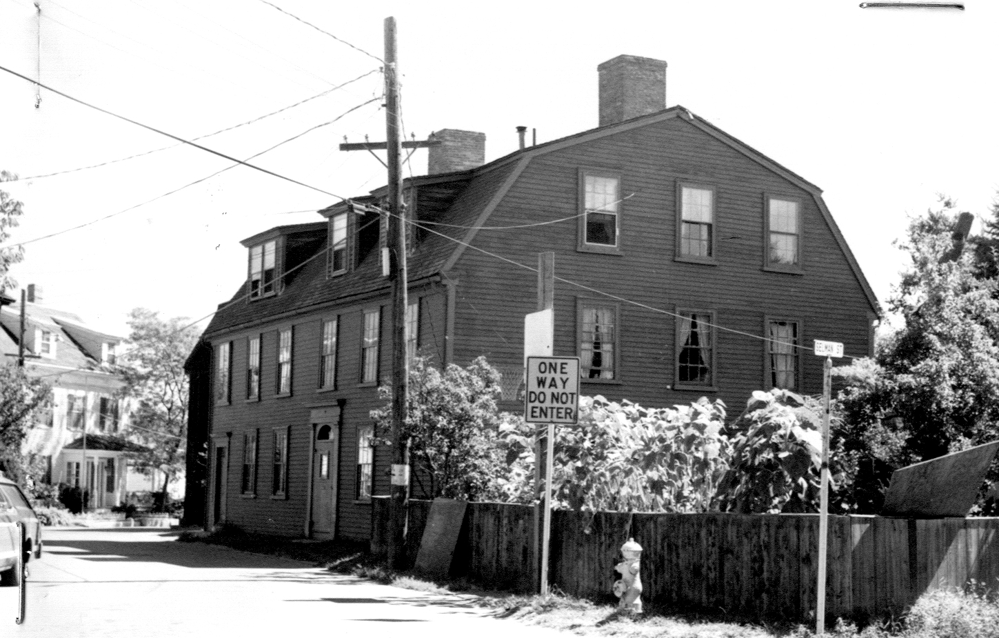 Edward Homan House, 29-31 Circle St., c. 1700-1805. The left side of this house is said to have been built by Edward Homan in the 17th century. The summer beams inside are smoothly finished and ornately chamfered. The right side was added between 1802 and 1805.