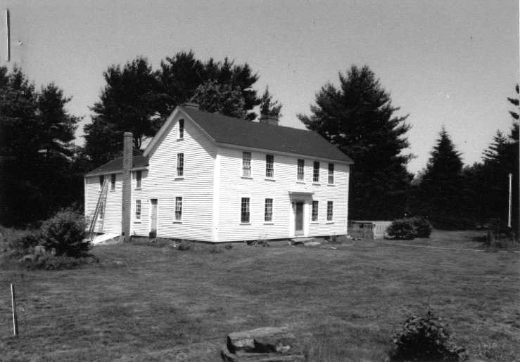 View an updated history of this house. This 18th-century, two-story house, with a lean-to and a side porch, is one of the few of its kind in the town. The fact that the house was originally two separate houses on different streets in town, moved to this location at the same time, and incorporated into one house with such pleasing style, demonstrates the capabilities and engineering knowledge available among the settlers at that period in history. Several persons connected with the military lived at one time in this house, or in one half of it. Another was a blacksmith. All played equally important parts in the development of the community in their individual ways. Dan Wicom was listed as a carpenter. He was a direct descendant of Richard Wicom, one of the First Settlers. One half of this house was moved from the original lot on Summer. The other half of the house was moved from Pleasant Street and was called the Todd House. A part of the old meeting house was used in building the barn, which has since been taken down.