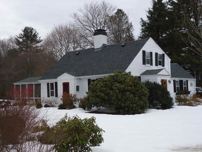 TPF.117 Elliot, Israel D. House, 5 Lockwood 1847: This property had three seventeenth and eighteenth century dwellings each succeeding the other on the same foundation. The extant house was built by Israel D. Elliot (1795-1873) in 1847-1848. In the 1820s Elliot was named an Ensign in the Topsfield Cavalry. One of a few early- to mid-nineteenth century Cape Cod cottages, this dwelling is a well-preserved example of a common building form in most New England communities. This area of Topsfield was settled by Goulds and many of the older properties along Washington Street were built by and for Goulds. Lockwood Lane was known as Mill Street reflective of the mill pond and the site of an early mill at the Boxford end. The road was laid out in 1767 and was called Mill Street until 1939 when town meeting voted the Selectmen’s recommended change to Lockwood Lane.
